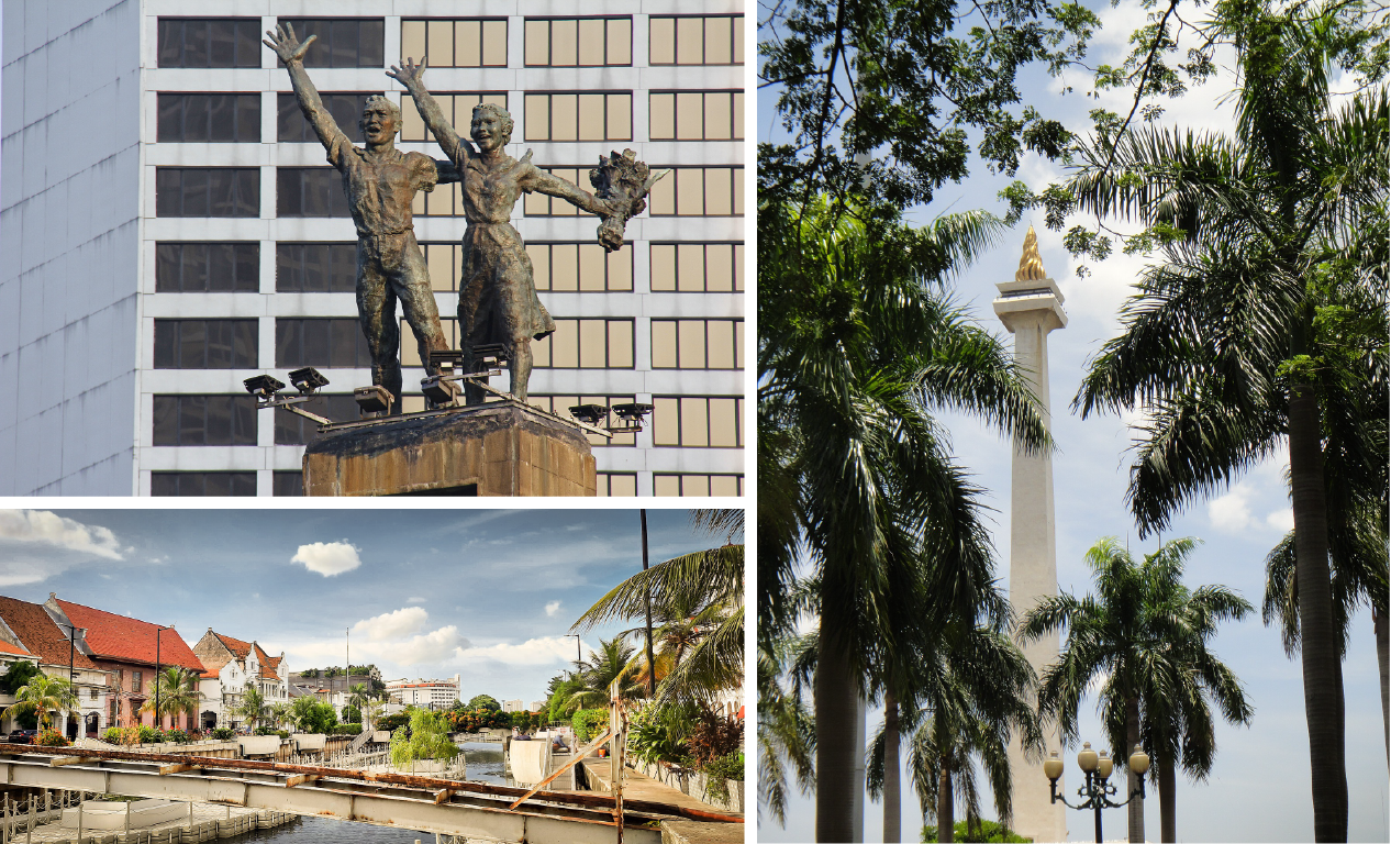 The old city of Batavia, or officially known as "Kota Tua"(Jakarta Old Town). It mainly consists of Dutch colonial buildings that were built during the 17th century. Here you can explore local street markets, various museums and enjoy local coffee shops, including the most famous one called "Cafe Batavia".